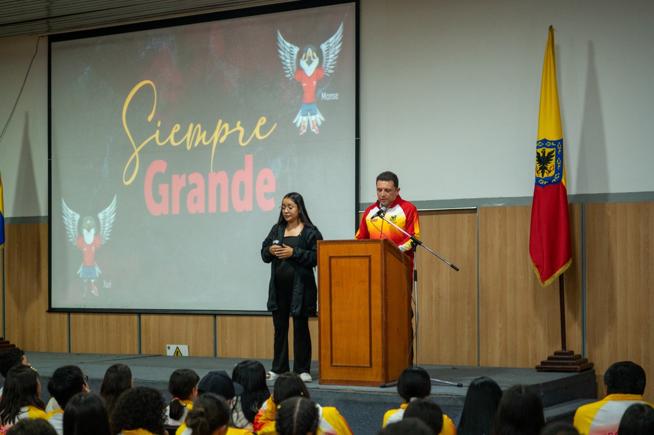 “Hoy nos convoca nuevamente el Equipo Bogotá, un símbolo, un orgullo, una causa que compartimos todos: el amor por nuestra ciudad, el compromiso con la juventud y la fe en el deporte como motor de transformación. Bogotá dice presente de nuevo en la Final Nacional de los Juegos Intercolegiados, y lo hará con una delegación histórica, todos unidos por la misma bandera y el mismo objetivo. Destaco el equipo de fútbol sala femenino, compuesto por estudiantes de la Jornada Escolar Complementaria JEC, ejemplo claro del impacto de nuestros programas en la formación integral de la niñez y la juventud capitalina”, destacó Gabriel Lagos.