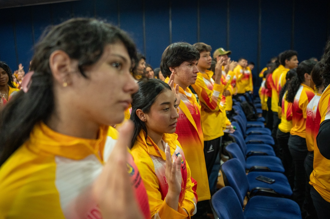 Bogotá, D.C., octubre 17 de 2025.- En una emotiva ceremonia, llena de entusiasmo y deseos de representar bien a la ciudad, se llevó a cabo en el Salón Presidente del IDRD, la entrega de la bandera a la delegación que representará a Bogotá en la Final Nacional de los Juegos Intercolegiados 2025, que se disputará en Cali y Palmira del 20 de octubre al 9 de noviembre.