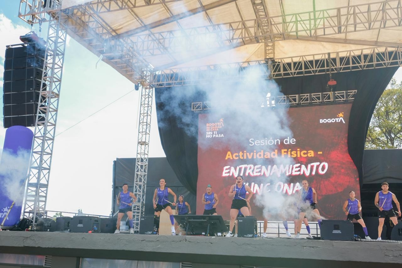 La jornada incluyó sesiones de aeróbicos, rumba y actividades dirigidas para diferentes públicos, orientadas por instructores del IDRD, quienes acompañan permanentemente la oferta de actividad física en distintos parques de Bogotá. La programación también incluyó el espacio Jóvenes Flex, desarrollado en articulación entre el Ministerio del Deporte y el IDRD.