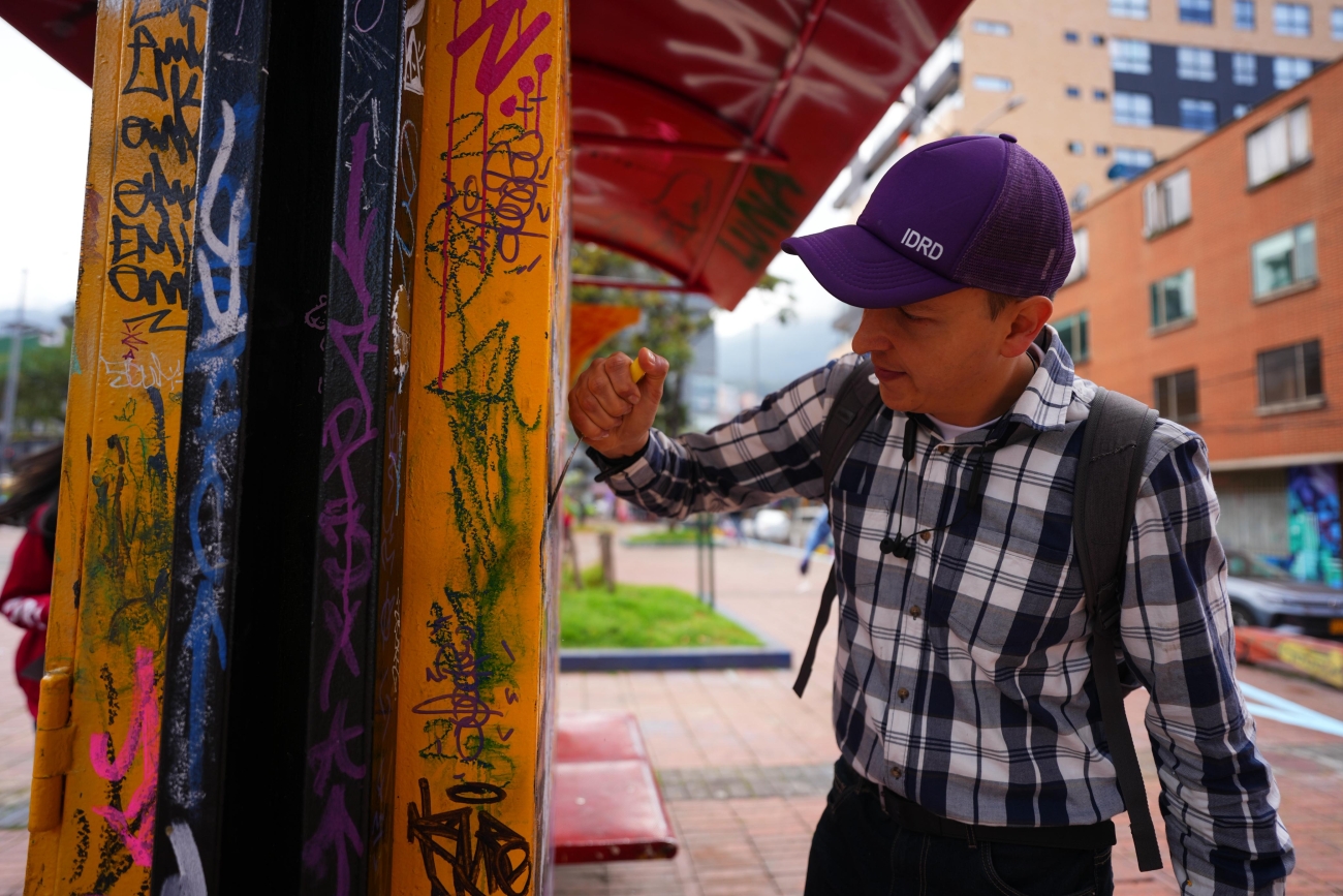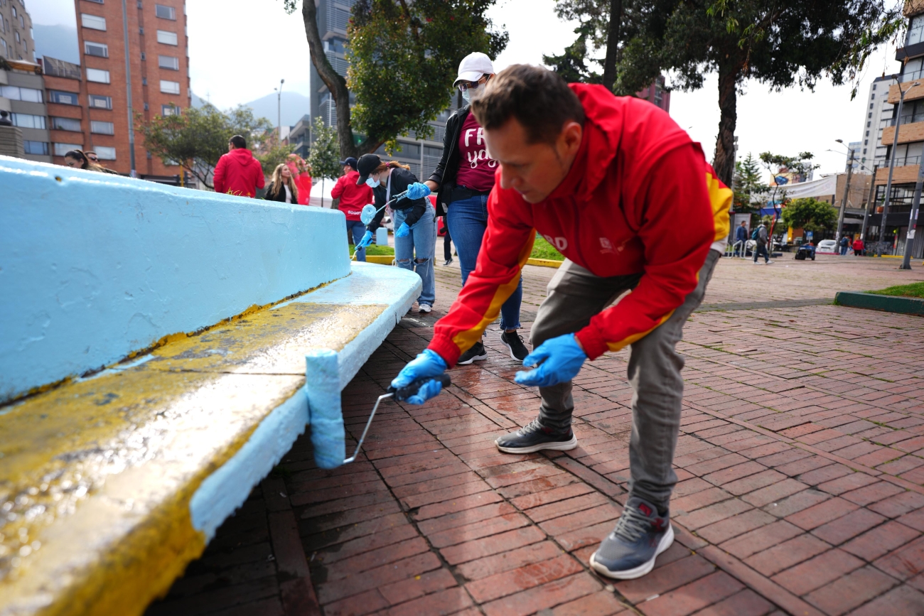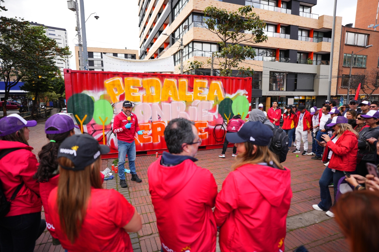 A las 8:00 a. m., miembros del Comité Directivo del IDRD se integraron a las cuadrillas. Posteriormente, el director del Instituto, Daniel García Cañón, recorrió cada frente de trabajo junto al subdirector técnico de Parques, Rodrigo Manrique. Tras conocer el concepto del mural, el director participó en la intervención artística y dirigió un mensaje al equipo de voluntarios.