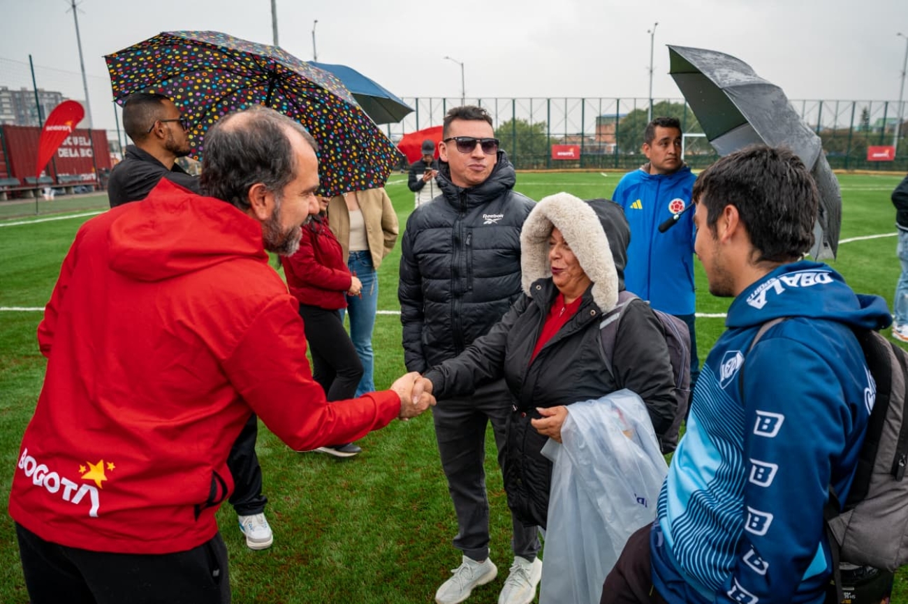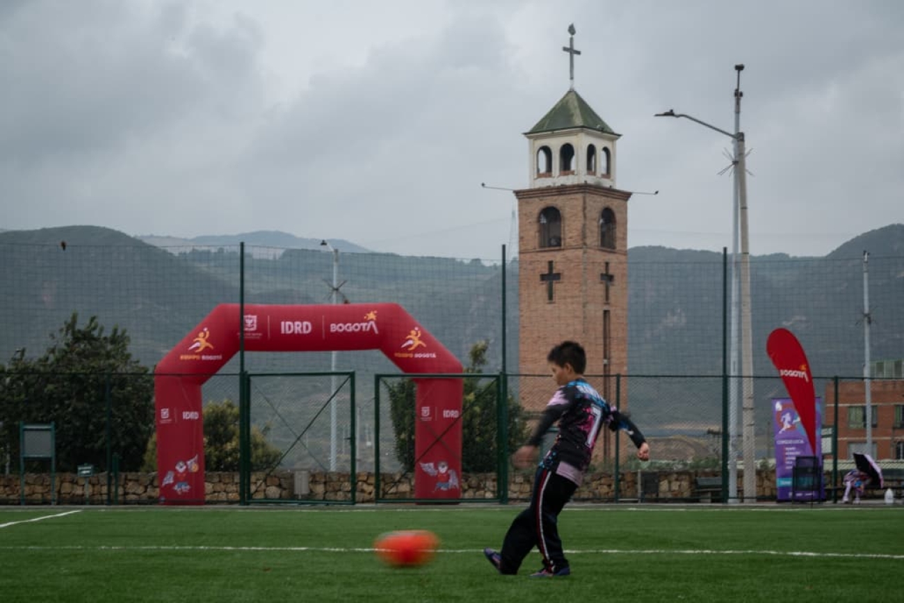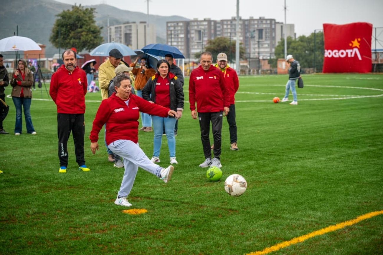 Bogotá, D. C., 15 de abril de 2026.- El Instituto Distrital de Recreación y Deporte (IDRD) entregó a la comunidad de Usme la renovada cancha sintética de fútbol 11 del Parque La Aurora, un escenario que ofrece mejores condiciones para la práctica deportiva, la recreación y el encuentro ciudadano.