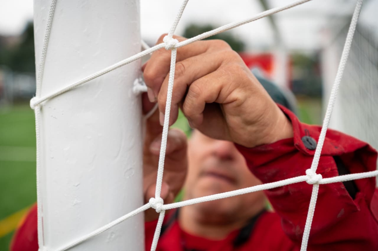 Entre las principales mejoras se destaca el reemplazo total de la grama sintética, que incluyó el retiro del material anterior, la nivelación del terreno y la instalación de una nueva superficie monofilamento de 60 milímetros, complementada con arena sílice y fibra de coco para garantizar mayor durabilidad y seguridad.