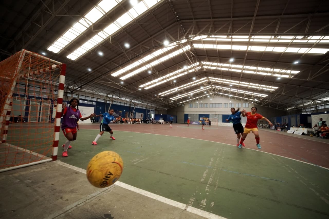 Finalmente, en deportes de conjunto, se han generado los siguientes resultados: en fútbol de salón femenino juvenil, el IED Fernando Soto Aparicio Bogotá cayó 2-6 frente Antioquia, en fútbol femenino juvenil el onceno del IED José María Velaz perdió 1-2 frente a Magdalena, en futsal femenino juvenil el María Currea superó 4-2 a Antioquia y el Liceo Nuevo Alejandrino Bogotá goleó 11-5 Bolívar. Este domingo se juega la última fecha de la fase de grupos y el lunes festivo, partidos directos por medallería.